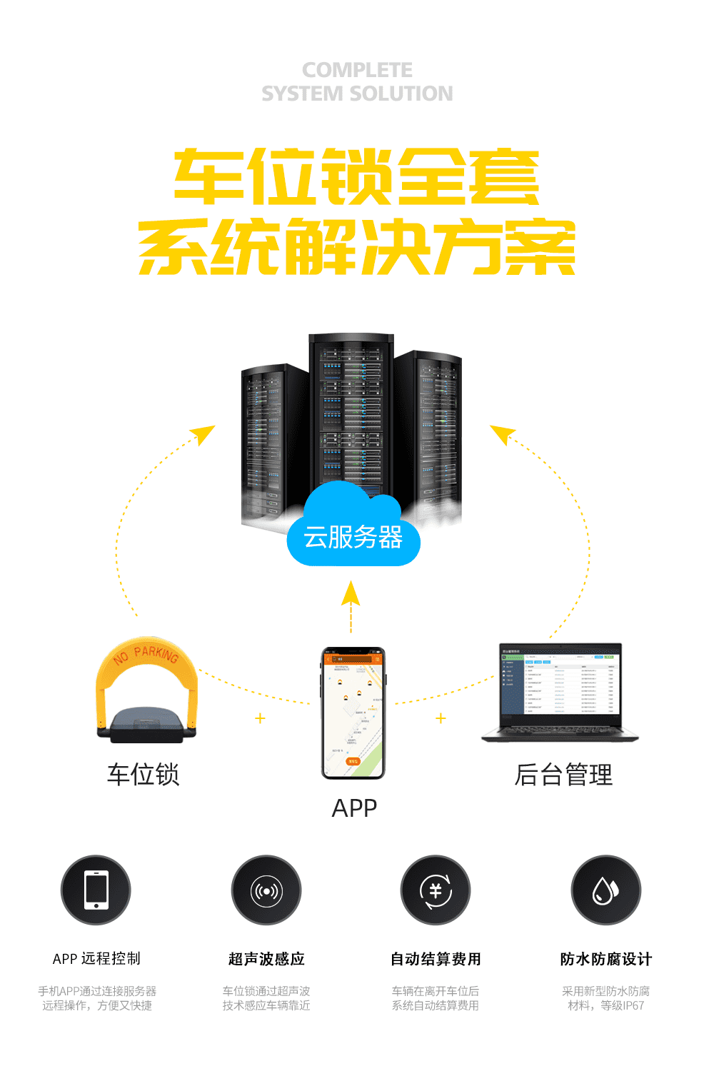 6. 智慧停車廠:歐米智能物聯網系統能將車位鎖與APP/小程序連接起來,實現對停車位的管理,節假日可以通過手機APP/小程序查看是否還有停車位,能夠節約人工成本,提高管理效率,提升用戶體驗